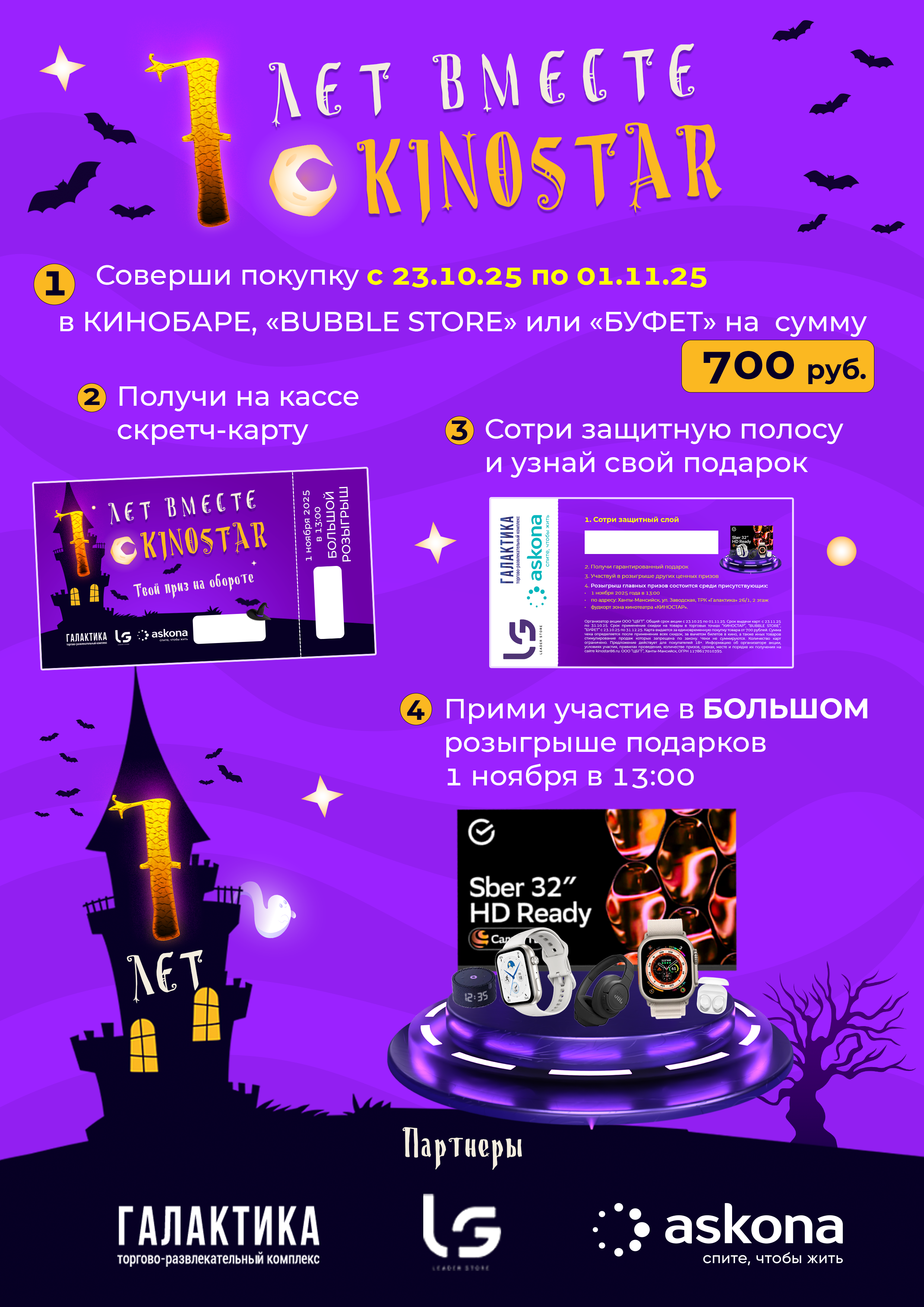 Билет в KINOSTAR можно купить по Пушкинской карте на сайте и в кассе кинотеатра!